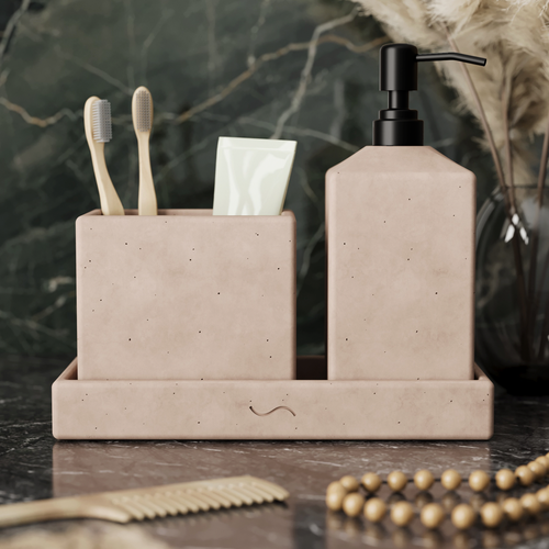 Набор для ванной Emily 11 (дозатор с черной помпой, стакан двойной, поднос S), бетон, розовый матовый: сравнение цен, характеристики, фото, актуальное наличие и цены.