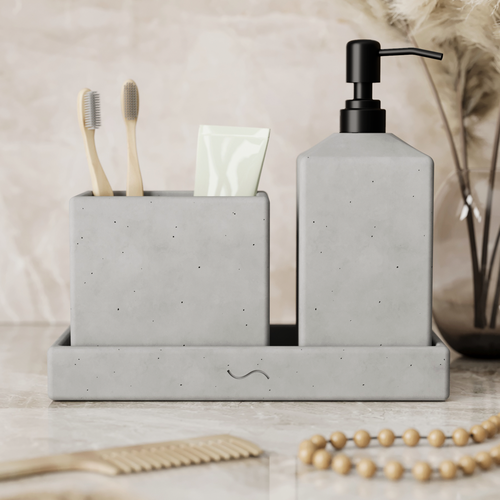 Набор для ванной Emily 11 (дозатор с черной помпой, стакан двойной, поднос S), бетон, серый матовый: сравнение цен, характеристики, фото, актуальное наличие и цены.