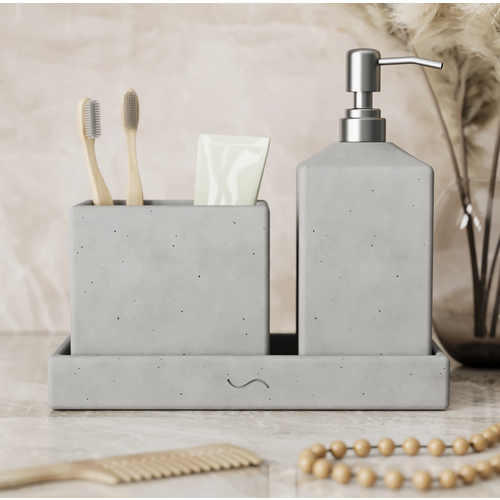 Набор для ванной Emily 11 (дозатор с металлической помпой, стакан двойной, поднос S), бетон, серый матовый