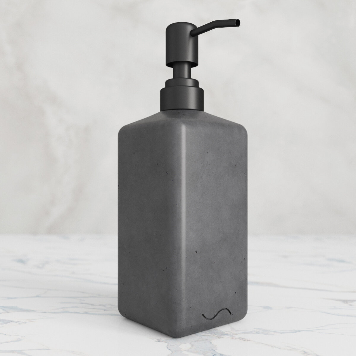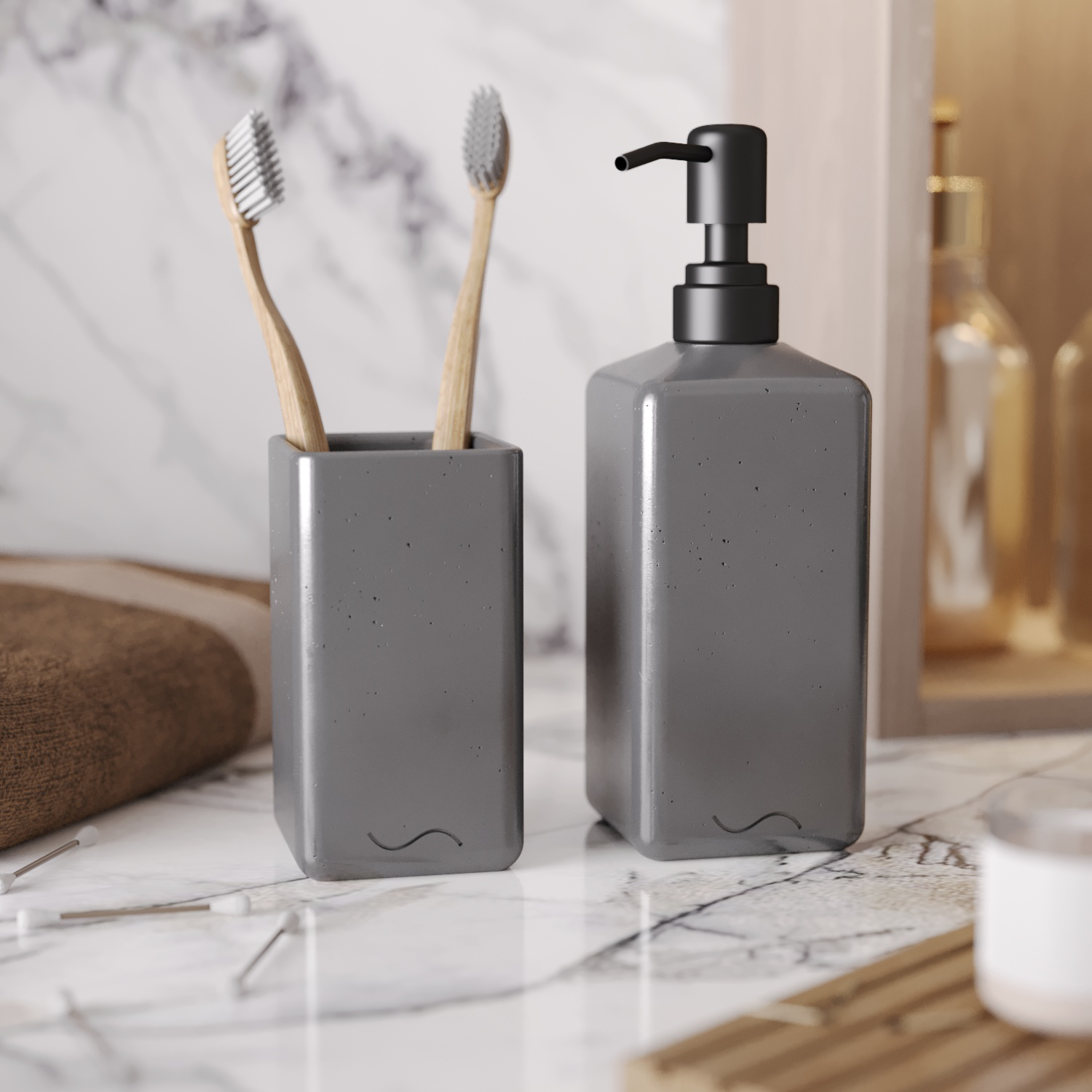 Набор для ванной Emily Slim 01 (дозатор с черной помпой, стакан для зубных щеток), бетон, графитовый глянцевый