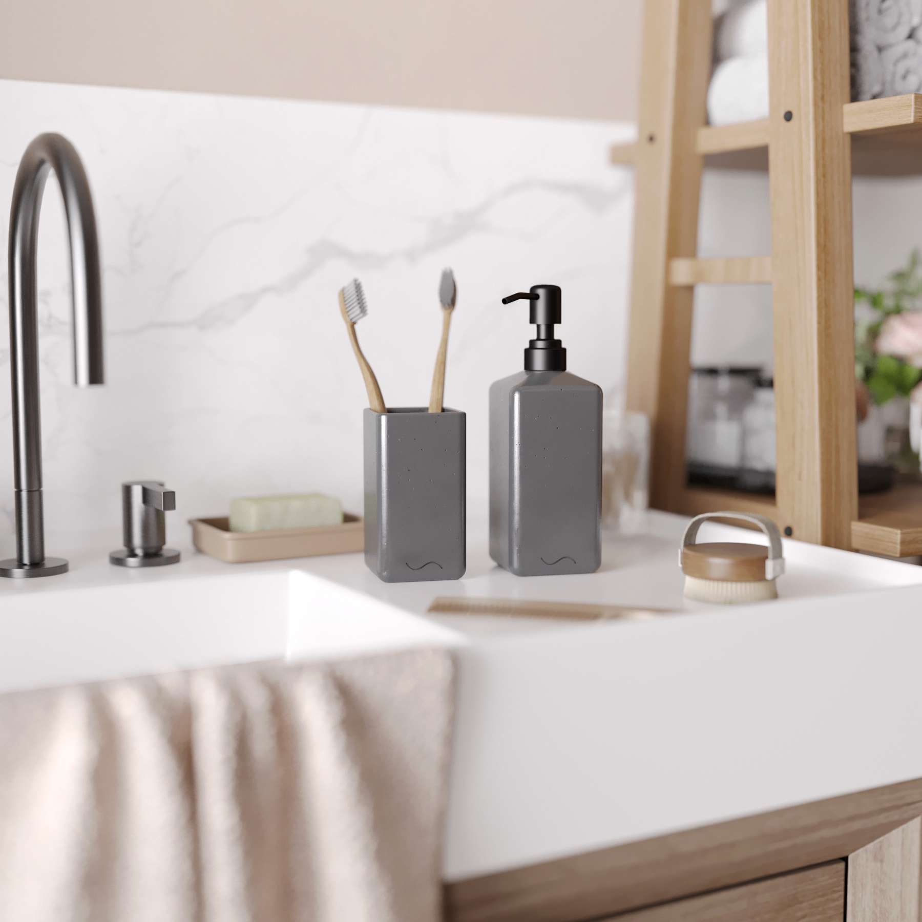 Набор для ванной Emily Slim 01 (дозатор с черной помпой, стакан для зубных щеток), бетон, графитовый глянцевый: сравнение цен, характеристики, фото, актуальное наличие и цены.