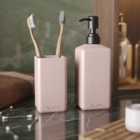 Набор для ванной Emily Slim 01 (дозатор с черной помпой, стакан для зубных щеток), бетон, розовый глянцевый