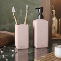 Набор для ванной Emily Slim 01 (дозатор с черной помпой, стакан для зубных щеток), бетон, розовый матовый