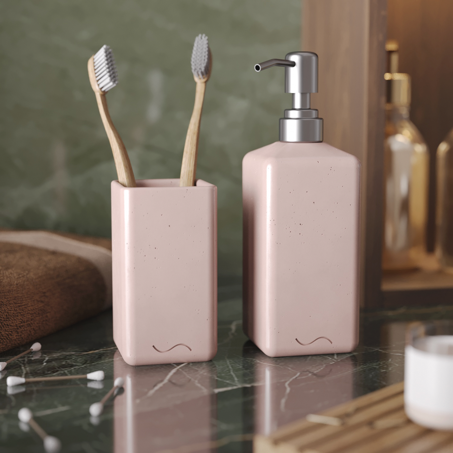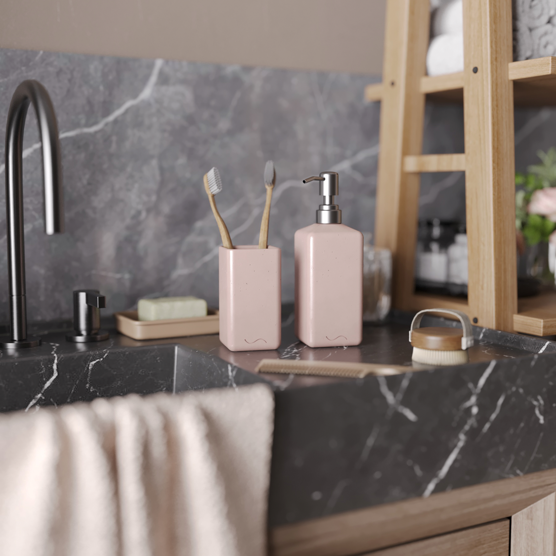 Набор для ванной комнаты из коллекции Emily Slim от MUSKO HOME - это набор декоративных аксессуаров для ванной, состоящий из 2 предметов. Все изделия изготавливаются вручную нашими мастерами из высококачественного декоративного бетона и обрабатываются водоотталкивающим лаком, надёжно защищающим текстуру от воды и появления разводов. Бетон - прочный и долговечный материал, что выгодно отличает его от гипса или керамики.