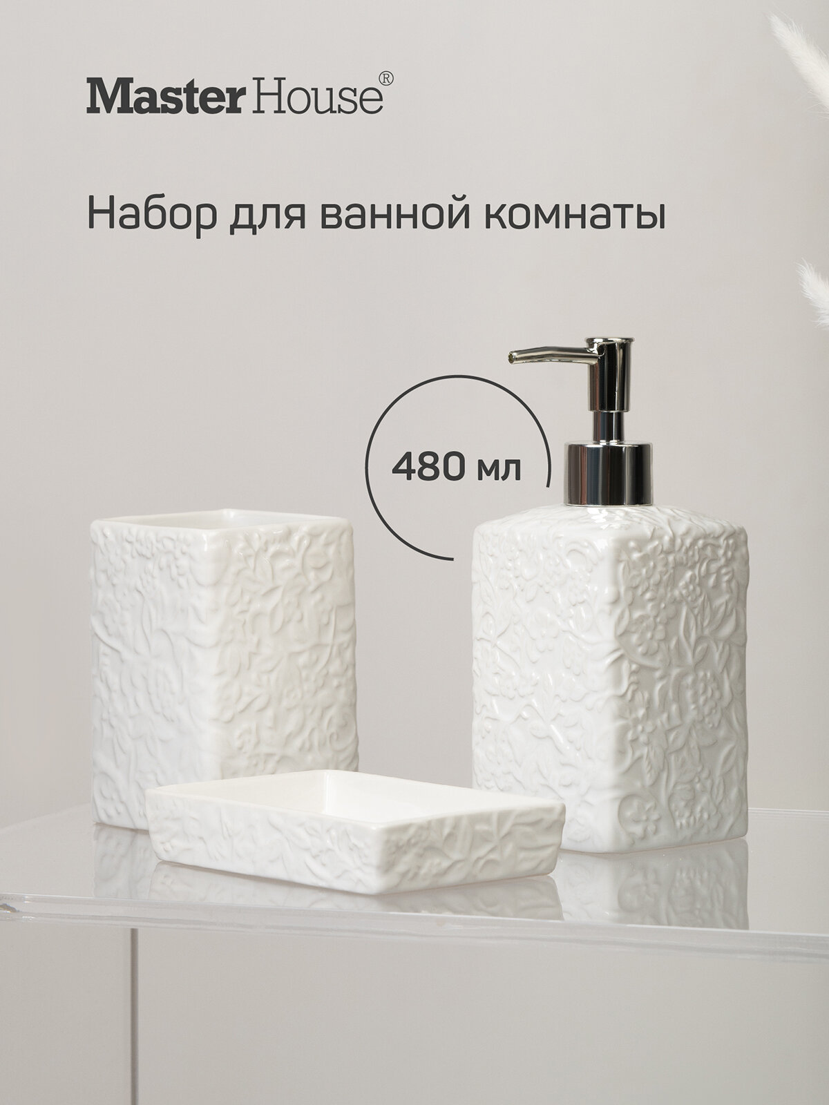 Купить Набор для ванной комнаты 3 предмета Grass фарфор белый Master House с доставкой по всей России.
