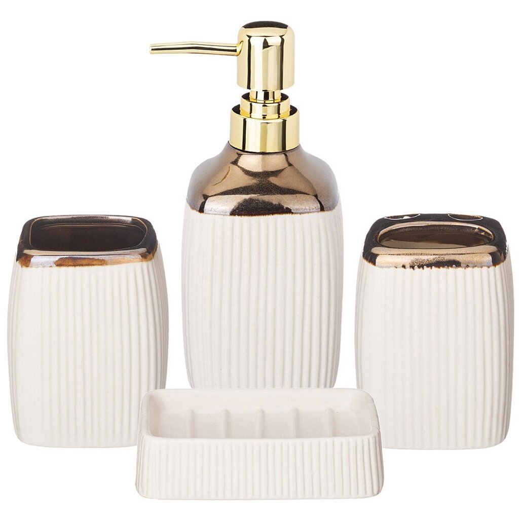 Набор для ванной комнаты 4 предмета, фарфор, белый с золотом — стиль и функциональность: сравнение цен, характеристики, фото, актуальное наличие и цены.