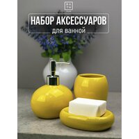 Набор для ванной BATH PLUS GIALLO - это незаменимый аксессуар для любой ванной комнаты. Он состоит из керамических мыльницы-дозатора, стакана для щеток, ершика с подставкой и дозатора для жидкого мыла.