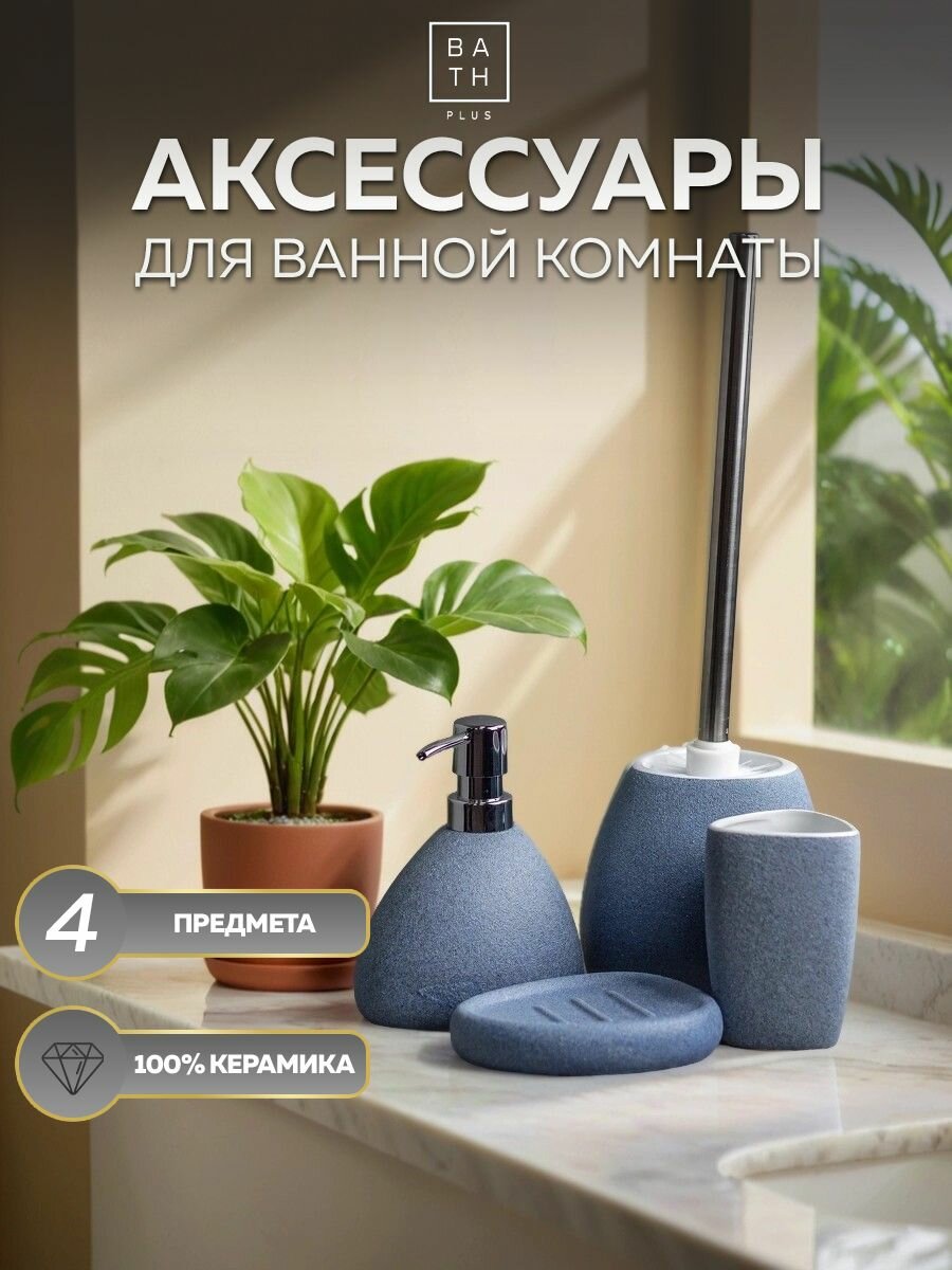 Набор для ванной комнаты аксессуары принадлежности комплект BATH PLUS AZZURRO керамика: сравнение цен, характеристики, фото, актуальное наличие и цены.