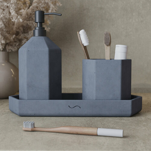 Набор для ванной комнаты отлично подойдет как подарок. Лаконичный дизайн бетонных вещей позволяет им идеально сочетаться. Декоративные изделия из бетона - это стиль, качество и невероятная долговечность. При аккуратном обращении изделия будут служить десятилетиями.