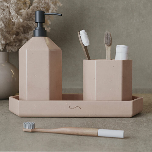 Набор для ванной комнаты отлично подойдет как подарок. Лаконичный дизайн бетонных вещей позволяет им идеально сочетаться. Декоративные изделия из бетона - это стиль, качество и невероятная долговечность. При аккуратном обращении изделия будут служить десятилетиями.