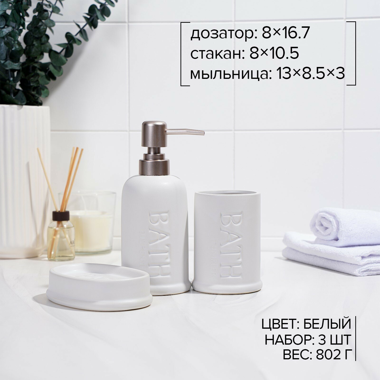 Набор для ванной комнаты SAVANNA «Бэкки», 3 предмета (мыльница, дозатор для мыла 400 мл, стакан), керамика, цвет белый: сравнение цен, характеристики, фото, актуальное наличие и цены.