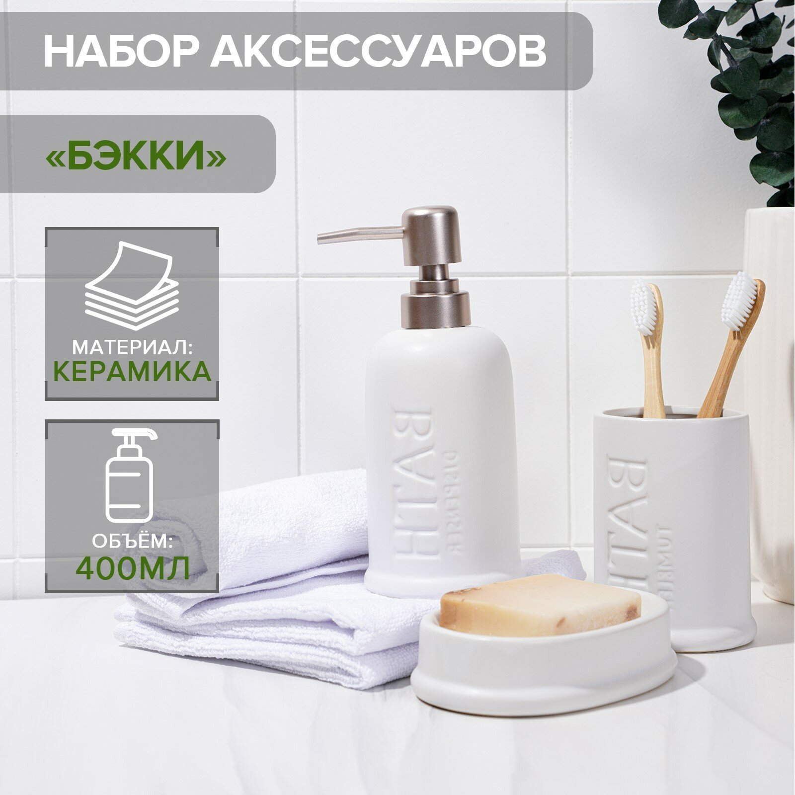 Купить Набор для ванной комнаты SAVANNA «Бэкки», 3 предмета (мыльница, дозатор для мыла 400 мл, стакан), керамика, цвет белый с доставкой по всей России.