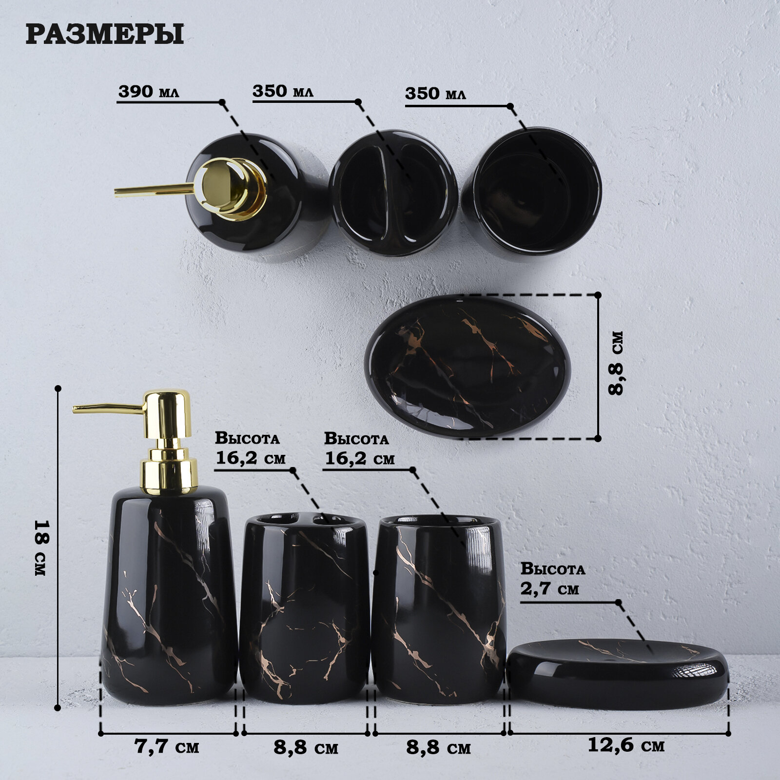 Набор для ванной «Молния», 4 предмета (мыльница, дозатор для мыла 390 мл, 2 стакана), цвет чёрный: сравнение цен, характеристики, фото, актуальное наличие и цены.