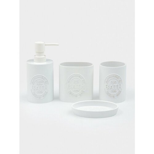 Комплект из четырёх предметов создаёт единый стиль в ванной комнате. Три аксессуара — мыльницу, стаканчики и дозатор для жидкого мыла — объединяет мягкая и приятная на вид форма. Простой белый цвет и лаконичный дизайн подходят для большинства интерьеров. Особенности набораПолный комплект для организации пространства у раковины. Изготовлен из практичного полирезина: не боится воды и прост в уходе. Однотонное белое исполнение легко сочетается с любым цветом плитки или мебели. Все предметы имеют закруглённые края и устойчивое основание. Удобный дозатор с механизмом подачи мыла на каждое нажатие. Компактный размер набора экономит место на полке или столешнице. Практичность для ежедневного использованияКаждый предмет в этом комплекте решает конкретную задачу. Дозатор для мыла избавляет от неопрятных подтёков и экономит средство. Два стакана подходят для хранения зубных щёток или косметических кистей. Мыльница с бортиками надёжно удерживает кусковое мыло, позволяя воде стекать. Материал не впитывает запахи и легко моется под струёй воды, сохраняя свежий вид. Такой подход к организации превращает хаотичную полку в аккуратную и функциональную зону.