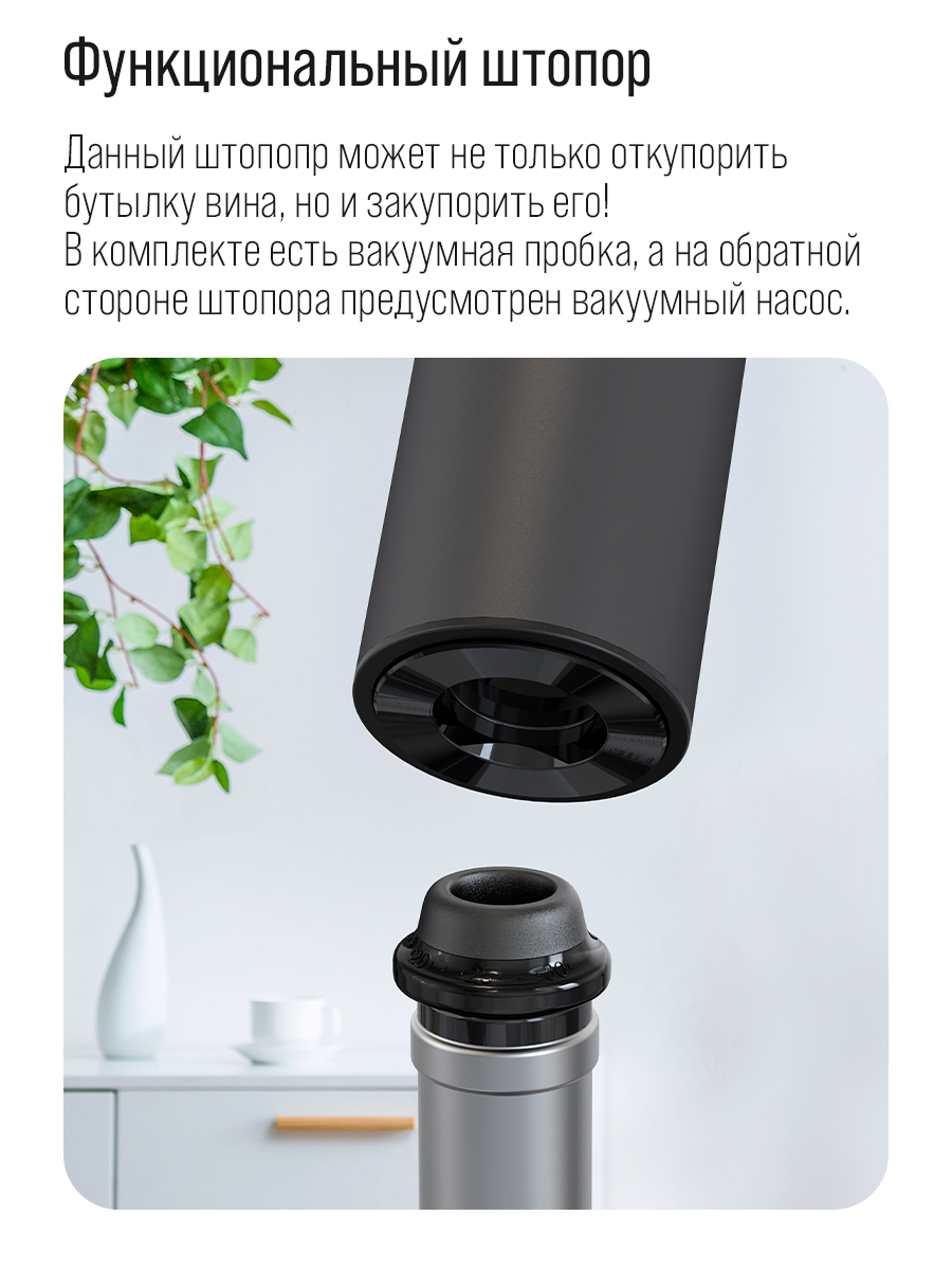 Купить Набор для вина Black Samurai ARTO Штопор электрический + аэратор + нож для фольги + вакуумные пробки + подставка с доставкой по всей России.