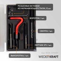 Набор WIEDERKRAFT для восстановления резьбы M4x0,7 является лучшим современным решением по ремонту поврежденной резьбы или упрочнению имеющейся.