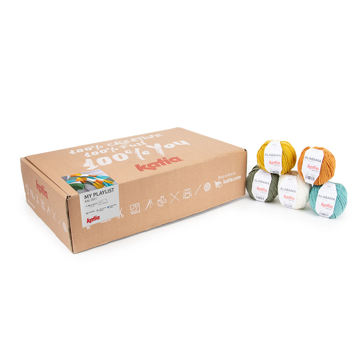 Этот комплект Katia My Playlist KAL состоит из 15 мотков пряжи Katia Alabama 5 разных цветов (по 3 шарика каждого цвета): кремовый (3), изумрудный (54), горчичный (66), бледно-зеленый (67) и цвет ржавчины (70). ). Также рекомендуем использовать следующие приспособления (в комплект не входят): иглы 4,5 мм, гобеленовую иглу и ножницы. При использовании этого набора вы получите лоскутное одеяло связанное спицами. Размер готового изделия My Playlist приблизительно 92 х 115 см.