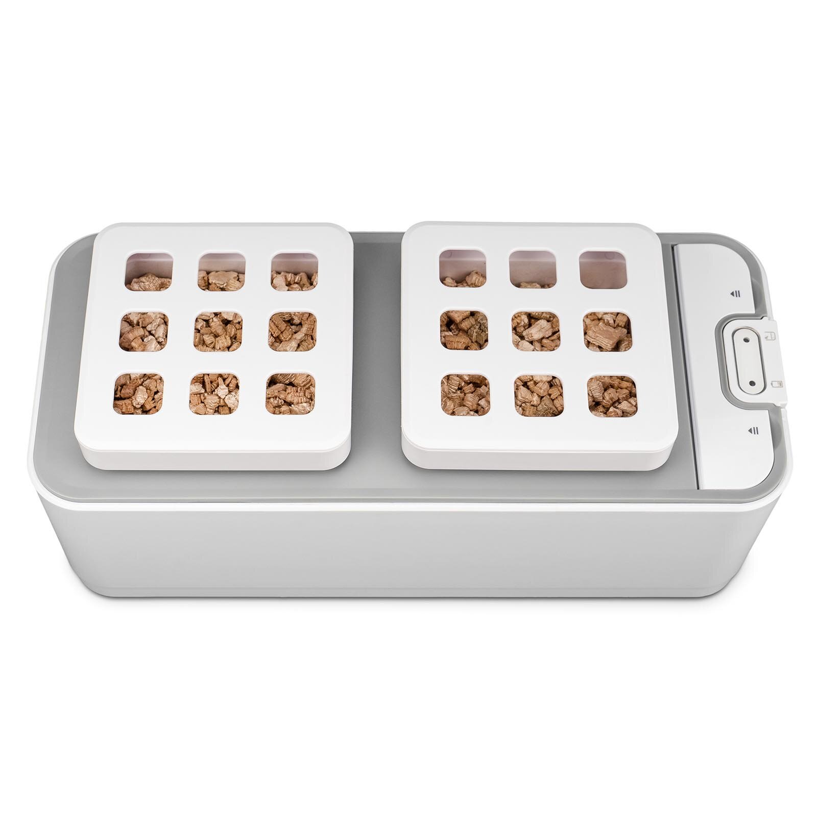 Выращивать растения с помощью iGarden LED невероятно легко. Просто разместите их семена в специальных контейнерах (в комплекте), установите контейнеры в ниши умного сада, налейте необходимое количество воды, и подключите iGarden к электросети. После этого вам останется только наблюдать, как день ото дня вырастают ваши растения. При этом вам не придётся следить за количеством воды, ведь iGarden оснащён специальным датчиком. Умный сад сам предупредит вас о необходимости долива. Однако стоит отметить, что нужное количество удобрений вам понадобится определить самостоятельно. Немаловажно, что iGarden оборудован мощной лампой, равномерно распределяющей свет между растениями. Она имитирует солнечный свет, и способна работать в .