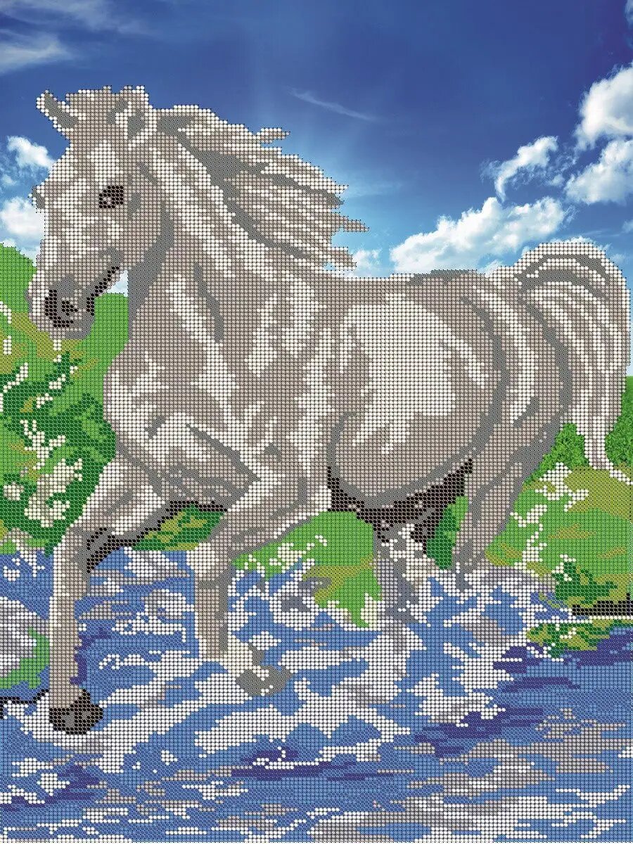 Вышивка чешским бисером картины Лошадь. В настоящее время вышивка бисером - второй по популярности вид бисерного рукоделия после плетения. Создание картин из бисера - расслабляющее занятие, отвлекающее человека от суеты. К тому же оно развивает творческое мышление, аккуратность и усидчивость. Более 1000 наименований. Все схемы созданы нашими дизайнерами индивидуально и только вручную. Наши художники, при разработке схем такого размера, вручную примеряют и расставляют более 20 000 ячеек для бисера. Схемы напечатаны на ткани со специальной полиуретановой пропиткой, которая очень прочно скрепляет нити ткани между собой и этим предотвращает появление дырок при натягивании сильно стянутой готовой работы на багет. Эта пропитка значительно эффективнее проклейки флизелином. Вышитую картину можно оформить, используя деревянную рамку или паспарту. Вот так просто и быстро можно украсить свой дом прекрасными картинами, вышитыми бисером.