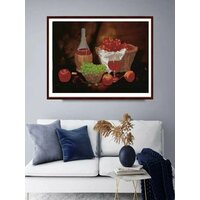 Вышивка чешским бисером картины Натюрморт. В настоящее время вышивка бисером - второй по популярности вид бисерного рукоделия после плетения. Создание картин из бисера - расслабляющее занятие, отвлекающее человека от суеты. К тому же оно развивает творческое мышление, аккуратность и усидчивость. Более 1000 наименований. Все схемы созданы нашими дизайнерами индивидуально и только вручную. Наши художники, при разработке схем такого размера, вручную примеряют и расставляют более 20 000 ячеек для бисера. Схемы напечатаны на ткани со специальной полиуретановой пропиткой, которая очень прочно скрепляет нити ткани между собой и этим предотвращает появление дырок при натягивании сильно стянутой готовой работы на багет. Эта пропитка значительно эффективнее проклейки флизелином. Вышитую картину можно оформить, используя деревянную рамку или паспарту. Вот так просто и быстро можно украсить свой дом прекрасными картинами, вышитыми бисером.