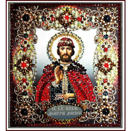 Набор для вышивания хрустальными бусинами и настоящими камнями студии вышивки "Образа в каменьях" "Святой Дмитрий" арт. 77-и-33. Любая рукодельница оценит по достоинству красоту и качество наших наборов. Вы получите небывалое удовольствие от вышивания, а результат превзойдет все ваши ожидания. Состав набора: Ткань плотный атлас с нанесенной авторской схемой (+пяльцы-рамка). Бусины "хрусталь" 2,4,6мм, авантюрин 10мм, прессованный коралл 8мм, жемчужина "Майорика" 4 мм, акриловые бусины (под жемчуг), бисер (Чехия), ювелирный бисер MILL HILL, стеклянные стразы на нити, винтажная розетка, трунцал 1,5мм(цвет золото и темное золото), трунцал 3,5 мм(цвет серебро). Игла для бисера+ ила для ювелирного бисера, схема расположения бусин, пошаговая инструкция по оплетению бусин с фотографиями. Наборы выпускаются с благословления церкви. Размер 14,5*16,5. Прекрасный подарок любимому папе, дедушке, мужу, любимой девушке, дочери, сестре, свекрови, коллеге, тете.