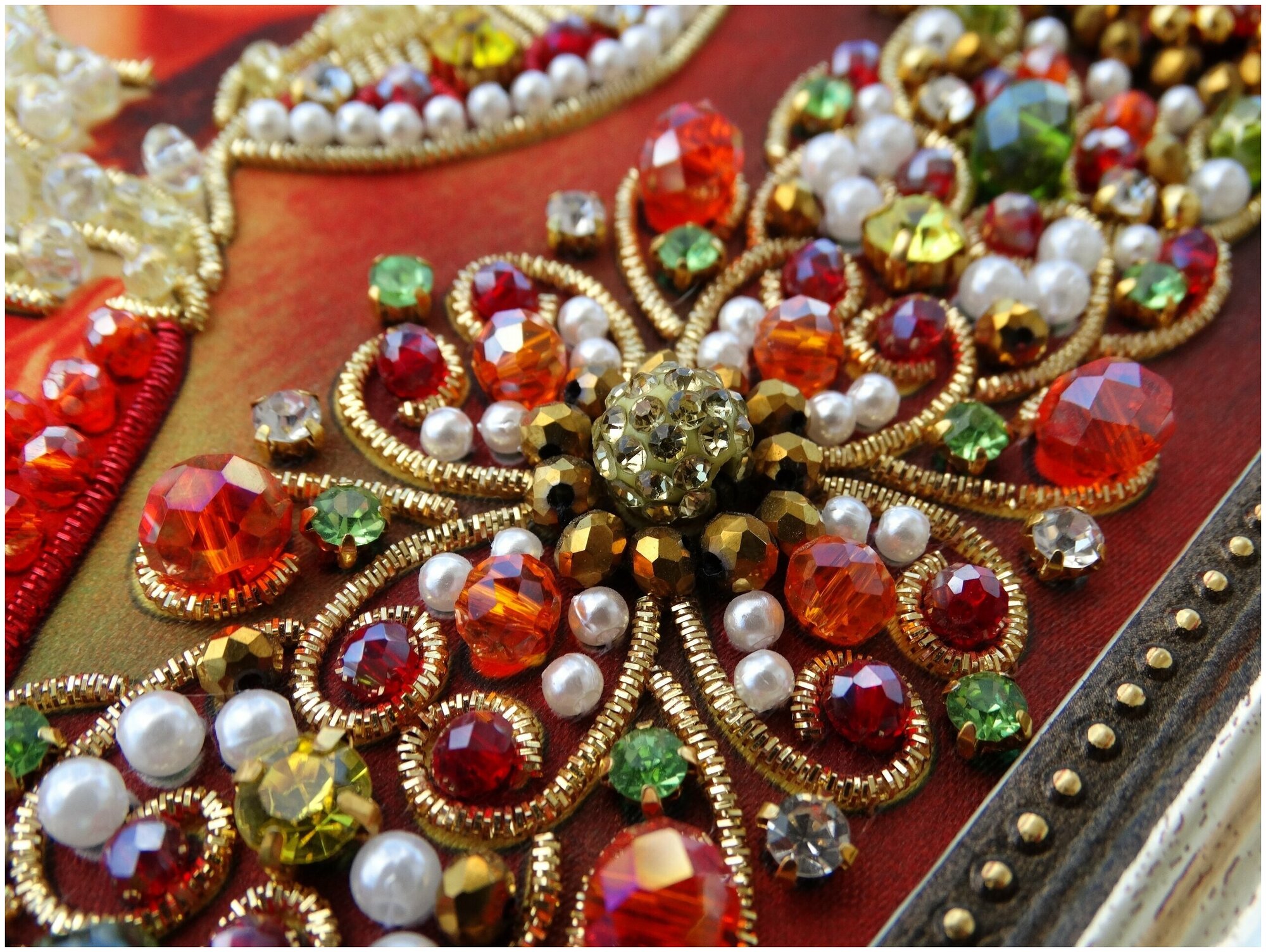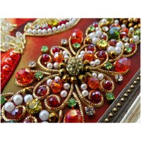 Набор для вышивания состоит из тщательно отобранных качественных материалов: хрустальные бусины, акриловые бусины, металлические бусины, трунцал, хрустальные стразы в металлических цапах, бусины из полимерной глины и хрустальных страз, ткань с нанесенной авторской схемой, подробная инструкция, игла. Упаковка: плотный пакет с цветной обложкой. Размер готовой работы: 16,5 х 19 см.