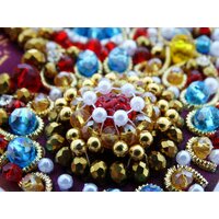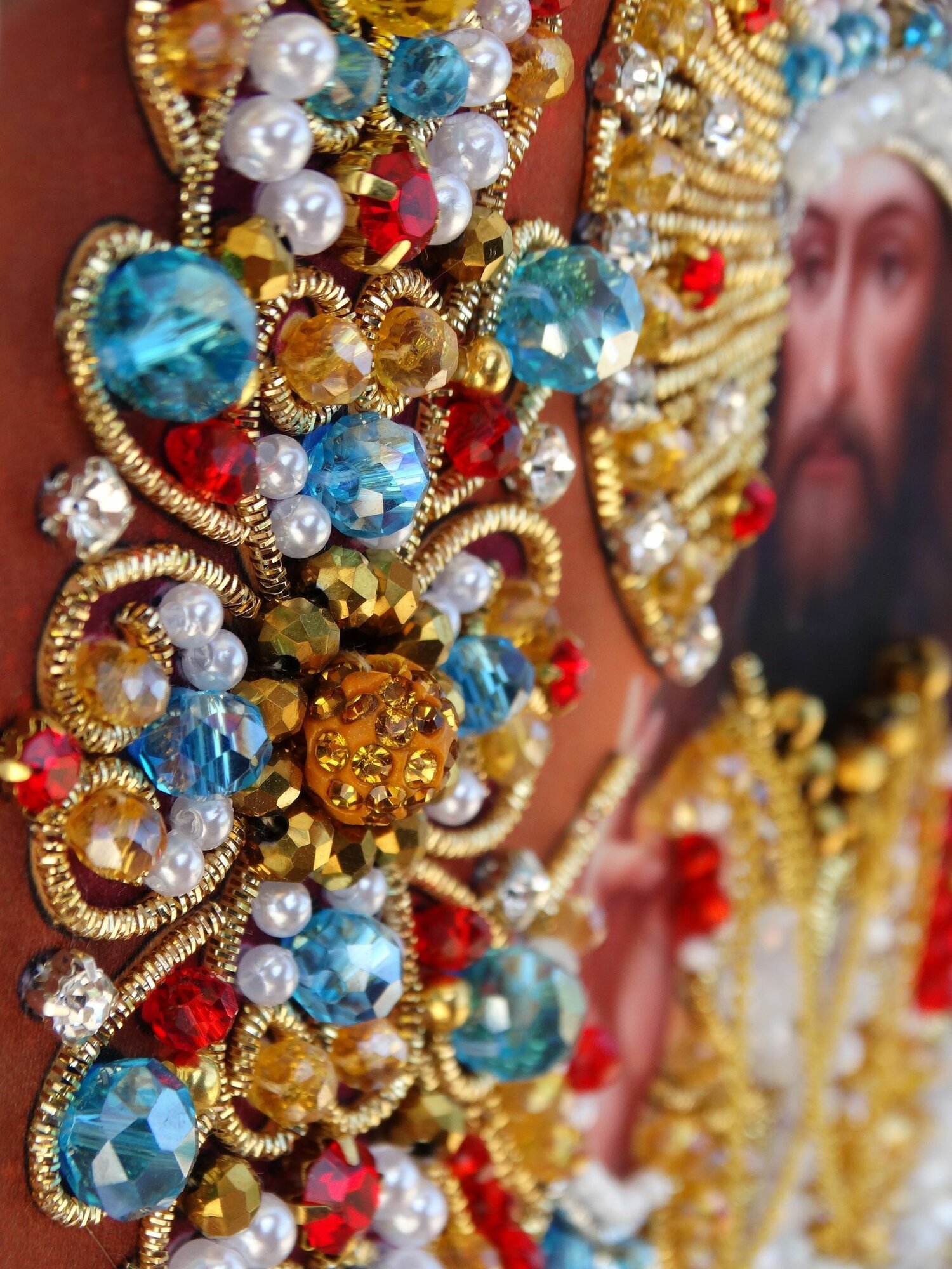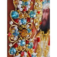 Набор для вышивания состоит из тщательно отобранных качественных материалов: хрустальные бусины, акриловые бусины, металлические бусины, трунцал, хрустальные стразы в металлических цапах, бусины из полимерной глины и хрустальных страз, цепочки, ткань с нанесенной авторской схемой, подробная инструкция, игла. Упаковка: плотный пакет с цветной обложкой. Размер готовой работы: 16,5 х 19 см.