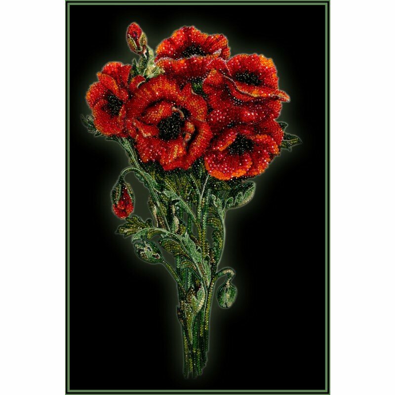 Купить Набор для вышивания Образа в каменьях #5565 Маки (черный фон), Вышивка бисером, 33 х 52 см с доставкой по всей России.