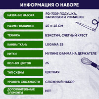 Набор для вышивания PANNA PD-7309 «Подушка. Васильки и ромашки» 45 x 45 см: сравнение цен, характеристики, фото, актуальное наличие и цены.