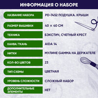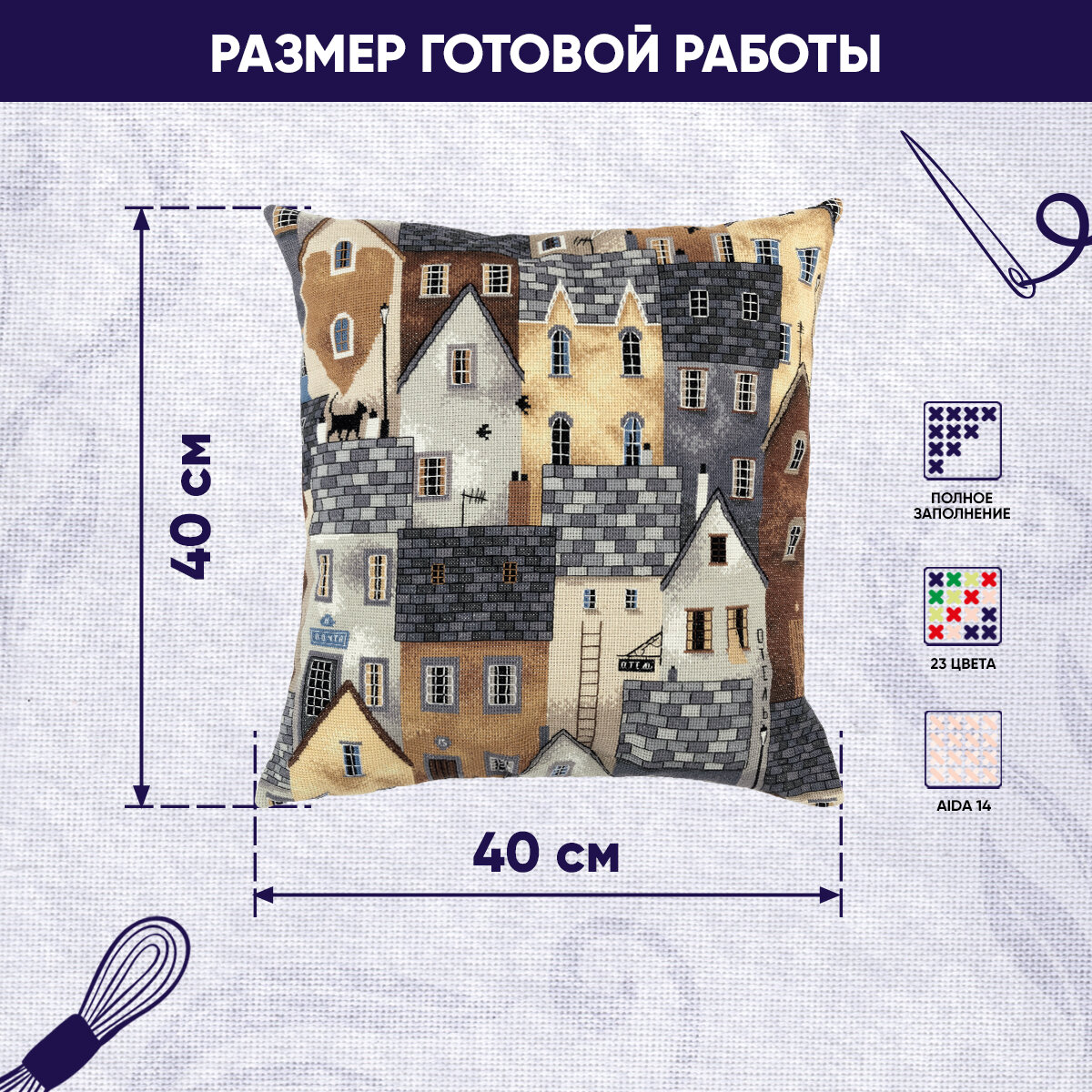 Набор для вышивания крестиком подушка PD-7452 Крыши ТМ PANNA – это прекрасный выбор для тех, кто увлечен рукоделием и творчеством. Размер готового изделия 40х40 см. В составе все необходимое для опытных и начинающих мастериц: канва Aida №14 Gamma белая без нанесенного рисунка, хлопковые нитки мулине Gamma 23 цвета, специализированная игла с тупым концом, подробная инструкция и цветная схема. Вам понадобятся только пяльцы для вышивания. Предоставляем схему в PDF формате по запросу на почту, указанную на обороте упаковки.