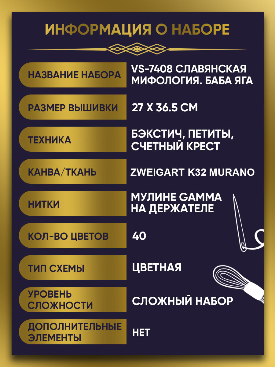 Набор для вышивания PANNA Золотая серия VS-7408 «Славянская мифология. Баба Яга» 27 х 36.5 см: сравнение цен, характеристики, фото, актуальное наличие и цены.