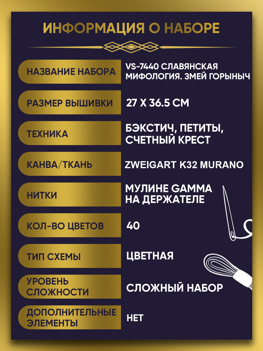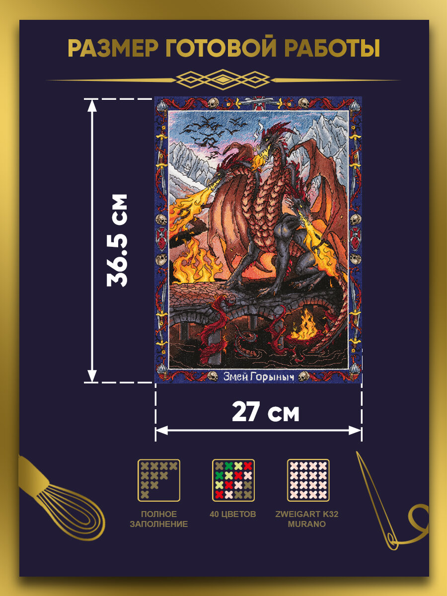 Набор для вышивания PANNA «Золотая серия» VS-7440 «Славянская мифология. Змей Горыныч» 27 х 36.5 см: сравнение цен, характеристики, фото, актуальное наличие и цены.
