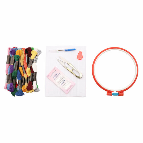 Вам не придется подбирать иглы и пяльцы, чтобы приступить к вышивке – они уже входят в комплект. Ножницы помогут аккуратно подрезать нить, а распарыватель – быстро убрать нежелательные стежки.