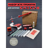 Набор для заточки ЖУК премиум. Полностью готовый набор для профессиональной заточки в домашних условиях. В комплект входит точилка с насадками для заточки карманных, охотничьих, а также всех видов кухонных ножей: овощных, филейных, шеф-ножей. Держатель для заточки ножниц. Электронный угломер, профессиональный набор абразивных брусков (5 шт.) и финишный брусок из натурального камня Байкалит-Туффит (6000 грит).