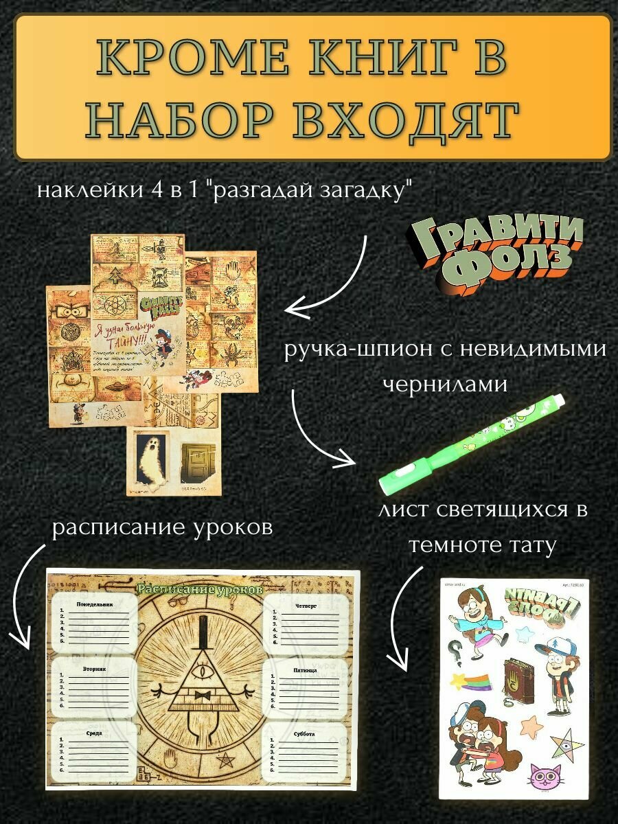 Погружайтесь в мир Гравити Фолз с каждым новым дневником! Их можно использовать для творчества, записывания интересных идей или просто в качестве стильной принадлежности. Не упустите возможность стать частью мира, полного тайн и приключений, и дайте волю своей фантазии вместе с Диппером и Мэйбл! Набор дневников станет замечательным подарком для поклонников и станет весомым дополнением вашей канцелярии.