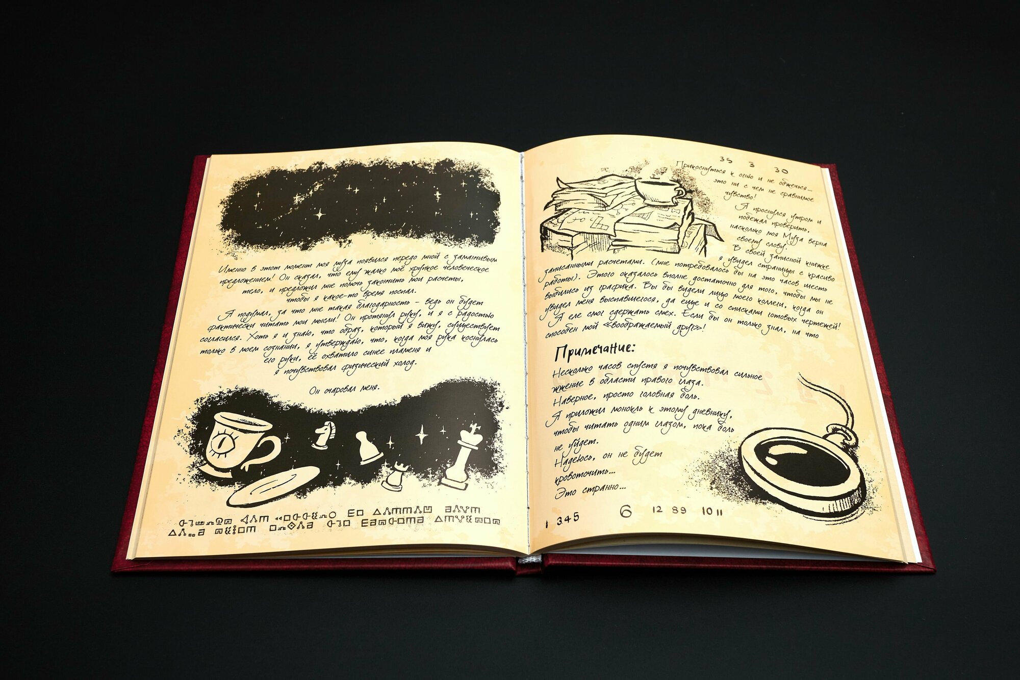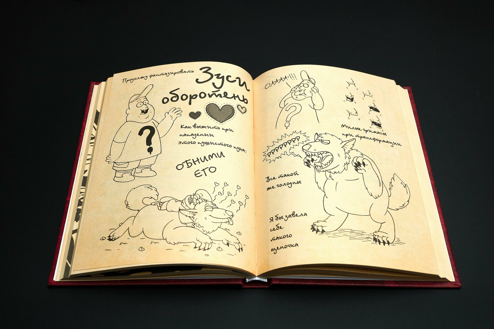Эти уникальные фанатские книги, написанные Диппером и Мейбл, полны секретов о мистическом городке Гравити Фолз, их обитателях и зловещих происшествиях, в том числе и о таинственном Билле Шифре. Дневники выполнены в тематическом оформлении, что делает их абсолютно идентичными оригинальным книгам из сериала. Благодаря высококачественной бумаге и детализированным иллюстрациям, каждый разворот переносит вас в центр событий и помогает раскрыть все загадки вместе с главными героями. Этот набор станет идеальным подарком ребенку и любимым атрибутом для всех, кто хочет исследовать таинственные записки и разгадать все тайны Гравити Фолз.