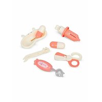 Все предметы удобно упакованы в розовый чемоданчик, который легко открывается и закрывается, что делает набор удобным для хранения и переноски.