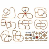 Набор дополнительных деревянных рельс для детской железной дороги состоит из 72 элементов. С помощью данного набора деревянных рельс можно собрать 8 разных вариантов полноценных дорог. Дополнительные элементы позволяют увеличить длину путей и собрать более сложные варианты железной дороги. В набор входят прямые и поворотные рельсы, развилки, перекресток, переезд со шлагбаумами, скрепляющие элементы, подъемные рельсы, опоры, электрический поезд с вагоном