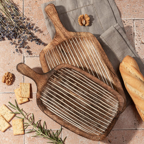 Подавать закуски на стол можно не только в тарелках и блюдах, но и на разделочной доске! Такой вариант сервировки вошел в моду совсем недавно, но уже прочно укрепился в мировых трендах. В комплект, представленный немецкими мастерами, входят сразу две доски для подачи, выполненные из натурального мангового дерева. Они отлично впишутся в уже существующую коллекцию предметов сервировки и станут поистине незаменимыми как в обычный будний, так и в праздничный день.