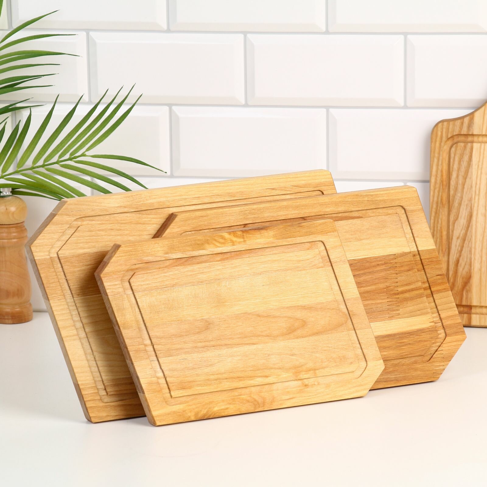 Артикул: 1712-303. Материал: Дерево, Вес: 2075 гр, Ширина, см: 18, Длина, см: 28, Размер упаковки: 23.5 x 9.5 x 34.5 см, Форма: Прямоугольник, Тип дерева: Склеенное, Толщина, см: 1.8, Температурное ограничение: Нет, Особенности: На подставке, Цвет: Бежевый, Вид дерева: Берёза, Можно мыть в посудомоечной машине: Нет, Тип нанесения рисунка: Без нанесения, В наборе, шт: 3, Набор: Да, Рисунок: Нет. Деревянная разделочная доска это классика, актуальная во все времена. Она не боится воды и имеет длительный срок службы. Подходит для мяса и овощей: продукты на ней не скользят, что значительно облегчает нарезку и обеспечивает безопасность повару. Также изделие почти не тупит ножи. Особенности: легко моется и быстро сушится; удобно хранить, можно подвесить на крючок; безопасный природный материал; невысокая цена. Уход за деревянной посудой:1. Перед первым использованием ополосните деревянное изделие в тёплой воде без добавления моющих средств. Протрите предмет впитывающей тканью. Оставьте его на 1–2 часа, чтобы испарилась вся влага.2. Не оставляйте изделие надолго в воде, так как дерево впитывает влагу и по мере высыхания может растрескаться.3. Храните посуду в месте, куда не попадают солнечные лучи и влага.4. Мойте посуду только вручную, мягкой губкой с добавлением небольшого количества моющего средства.5. Не оставляете деревянную посуду грязной или мокрой надолго.6. После мытья тщательно протрите изделие и высушите в вертикальном положении.