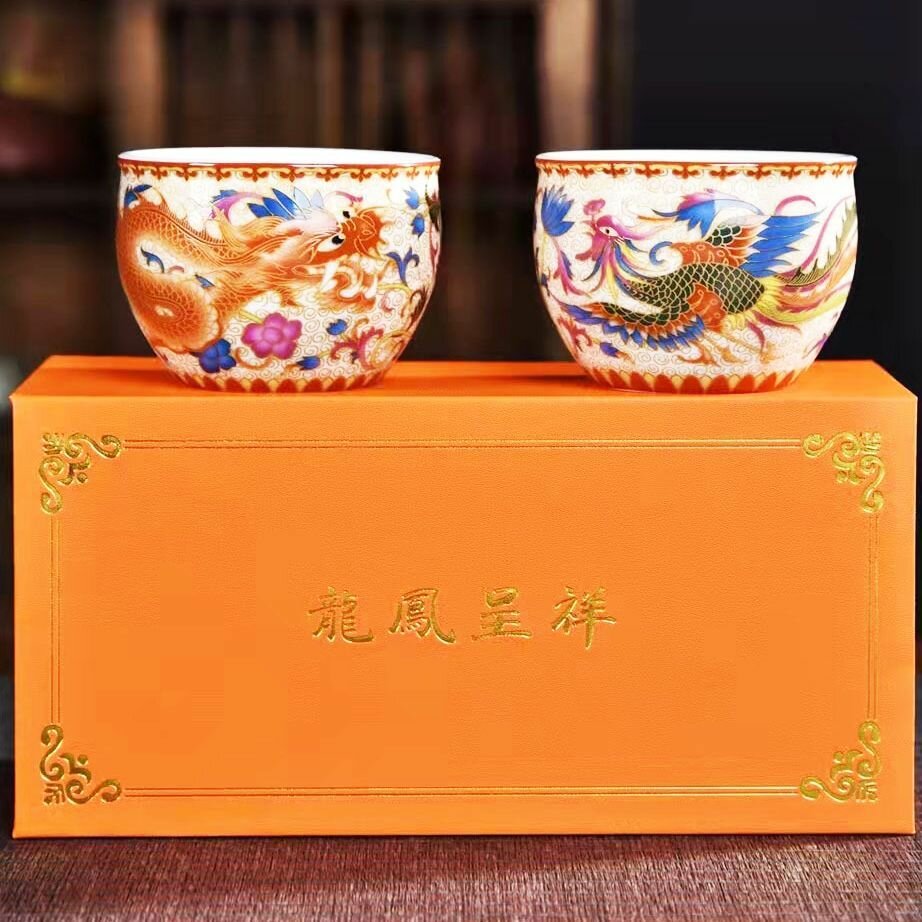 Купить Набор «Дракон и Феникс» 2 пиалы в подарочной коробке для чайной церемонии. Деловой подарок, новогодний презент с доставкой по всей России.