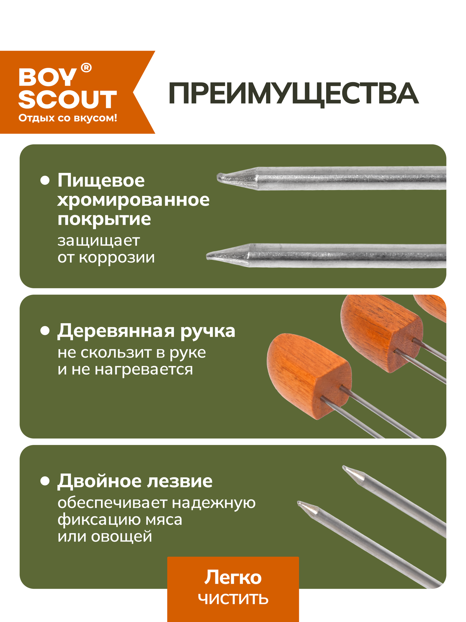 Набор двойных шампуров 38 см с деревянными ручками, 4 шт в упаковке BOYSCOUT: сравнение цен, характеристики, фото, актуальное наличие и цены.