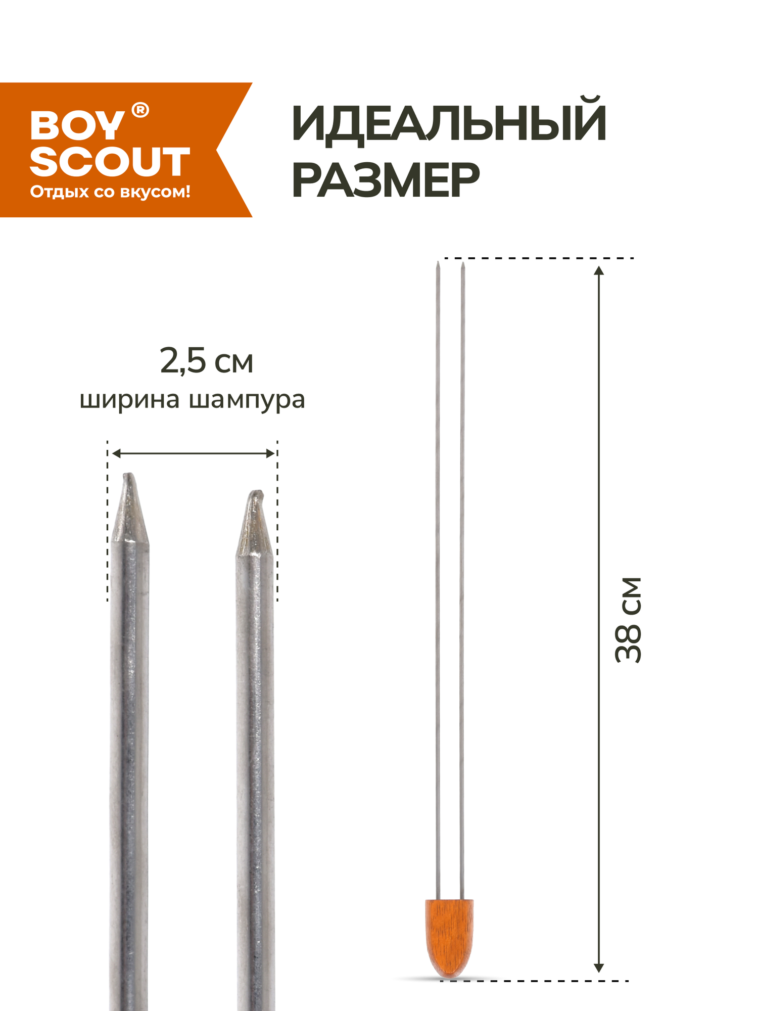 Купить Набор двойных шампуров 38 см с деревянными ручками, 4 шт в упаковке BOYSCOUT с доставкой по всей России.