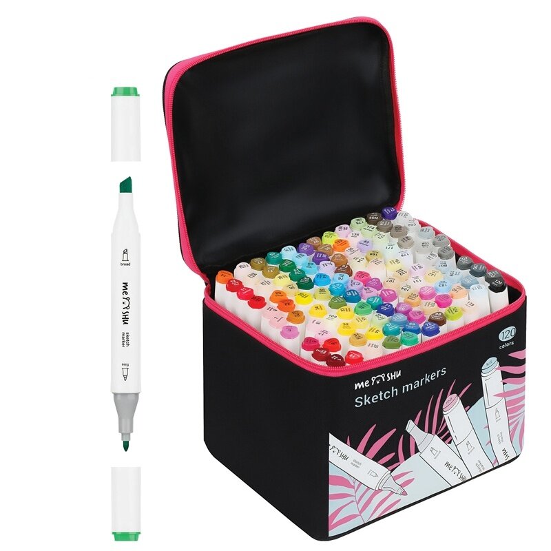 Набор двусторонних маркеров для скетчинга MESHU 120цв, основные цвета, корпус трехгранный, пулевид./клиновид. наконечники, текстильный чехол на молнии, 343086: сравнение цен, характеристики, фото, актуальное наличие и цены.