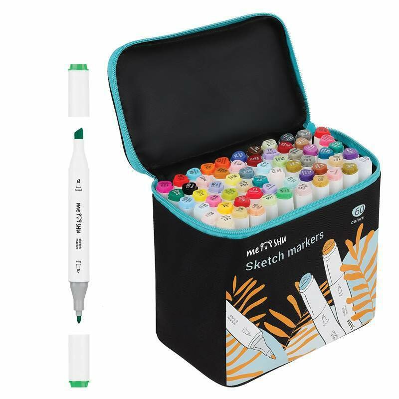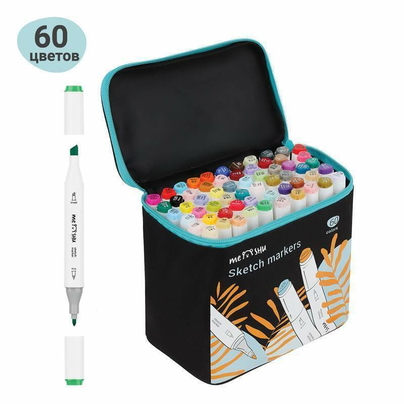 Набор двусторонних маркеров для скетчинга MESHU 60цв, основные цвета, корпус трехгранный, пулевид./клиновид. наконечники, текстильный чехол на молнии (арт. 343083): сравнение цен, характеристики, фото, актуальное наличие и цены.