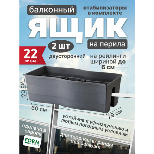 Купить Набор двусторонних ящиков для цветов и растений на перила балкона Form Plastic Fala 60 см, 2 шт, антрацит с доставкой по всей России. Набор двусторонних ящиков для цветов и растений на перила балкона Form Plastic Fala 60 см, 2 шт, антрацит: сравнение цен, характеристики, фото, актуальное наличие и цены.