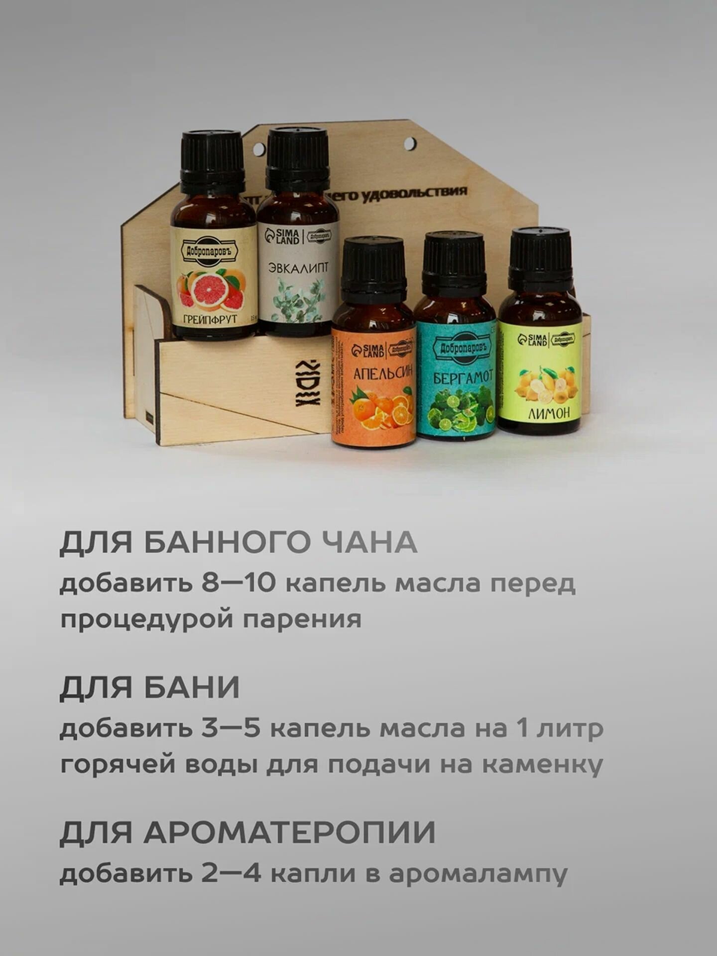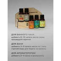 Для Сибирского Банного Чана: добавить 8-10 капель масла перед процедурой парения. Для бани: добавить 3-5 капель масла на 1 л. горячей воды для подачи на каменку. Для ароматерапии: добавить 2-4 капли в аромалампу.