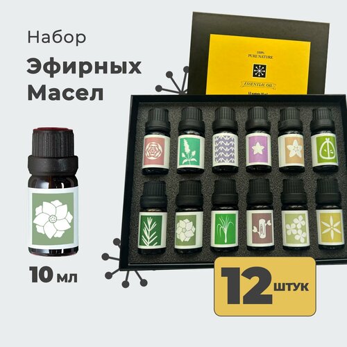 Набор эфирных масел Essential Oil, 12 штук по 10 мл/100% натуральные масла/Масла ароматические для дома, бани и сауны, ванны, увлажнителя воздуха, аромалампы.