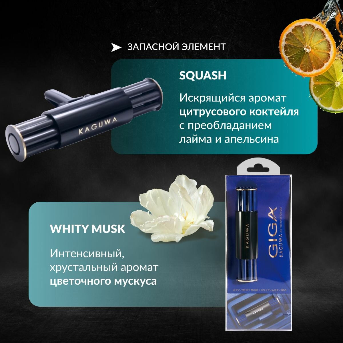 Купить Набор EIKOSHA ароматизатор на кондиционер GIGA KAGUWA — WHITY MUSK арт. Q-54 + Запасной элемент для ароматизатора на кондиционер EIKOSHA Giga — SQUASH арт. G-91 с доставкой по всей России.