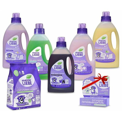 Набор «Безупречная стирка» от эко-бренда Meine Liebe обеспечат Вам 5 месяцев идеальной чистоты для Ваших вещей! Концентрированные биоразлагаемые текстуры без хлора, фосфатов и фосфанатов не только эффективно справляются со всеми видами загрязнений, они не наносят вреда окружающей среде. Вам остается только выбрать нужное сегодня средство в зависимости от вида ткани и соответствующий режим стирки. Отличный бонус к данному набору- пятновыводящий универсальный карандаш на основе активного кислорода- перед ним «бледнеют» и исчезают все пятна, он настоящая «палочка-выручалочка» в сложных ситуациях! Состав набора: 1. MEINE LIEBE Экологичный универсальный стиральный порошок-концентрат без фосфатов, хлора и энзимов 1000 г 2. MEINE LIEBE Биоразлагаемый Гель-концентрат для стирки шерстяных, шелковых и деликатных тканей ЭКО без фосфатов, хлора и энзимов 800 мл 3. MEINE LIEBE Биоразлагаемый Гель-концентрат для стирки цветных тканей ЭКО 800мл 4. MEINE LIEBE Биоразлагаемый Гель-концентрат для стирки черных и темных тканей ЭКО 800мл 5. MEINE LIEBE Биоразлагаемый Кондиционер для белья «Сладкие сны» ЭКО Концентрат 800мл 6. MEINE LIEBE Биоразлагаемый Кондиционер для белья «Липовый цвет» ЭКО Концентрат 800мл Подарок: MEINE LIEBE Кислородный карандаш-пятновыводитель универсальный ЭКО, без хлора, фосфатов